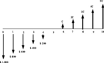 Considere el siguiente flujo de caja. ¿Cuál será el valor de C que convierta el